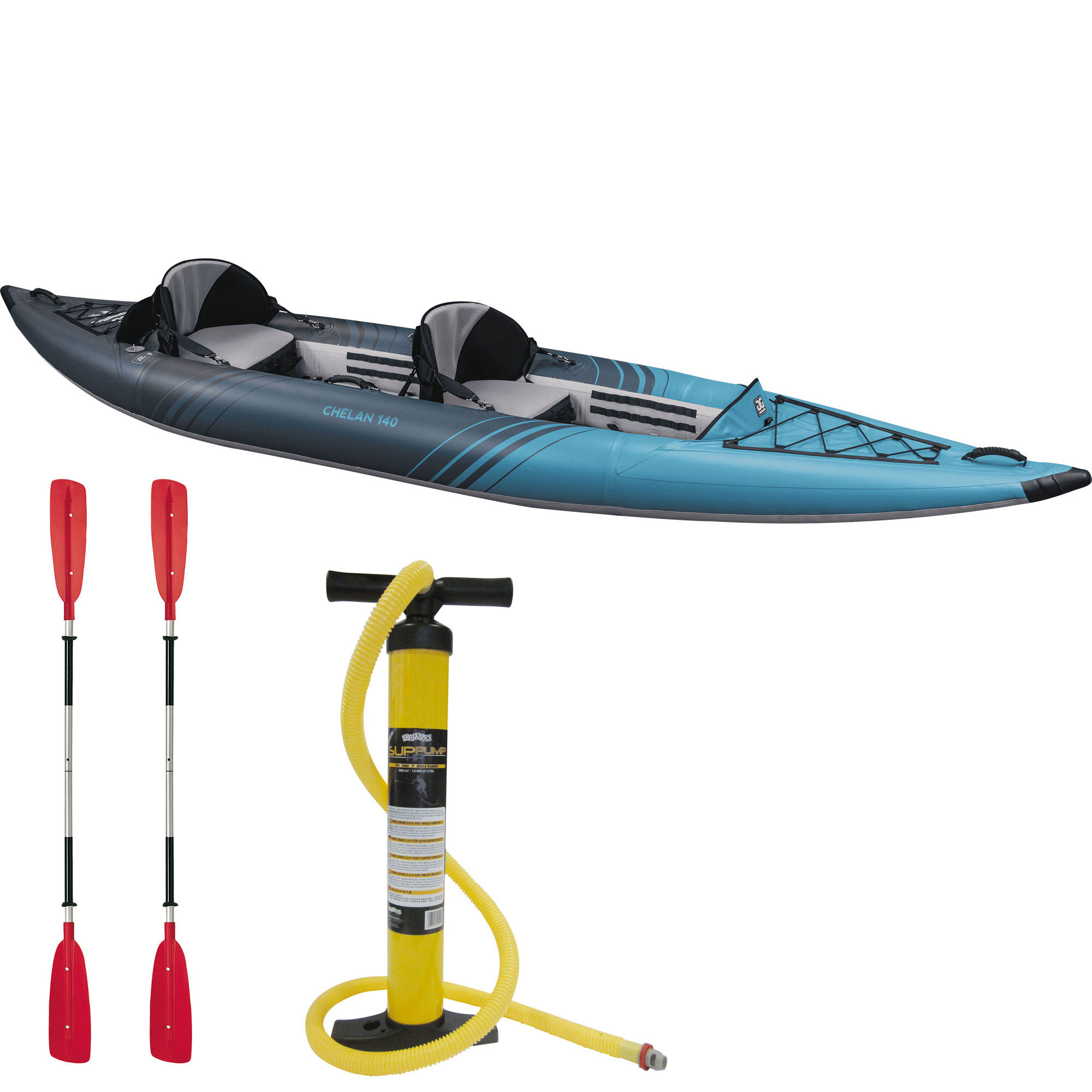 PACKAGE: Buy this kayak and get 2 x Bravo 2 Piece Paddles and a Bravo Double Action Hand Pump for free
