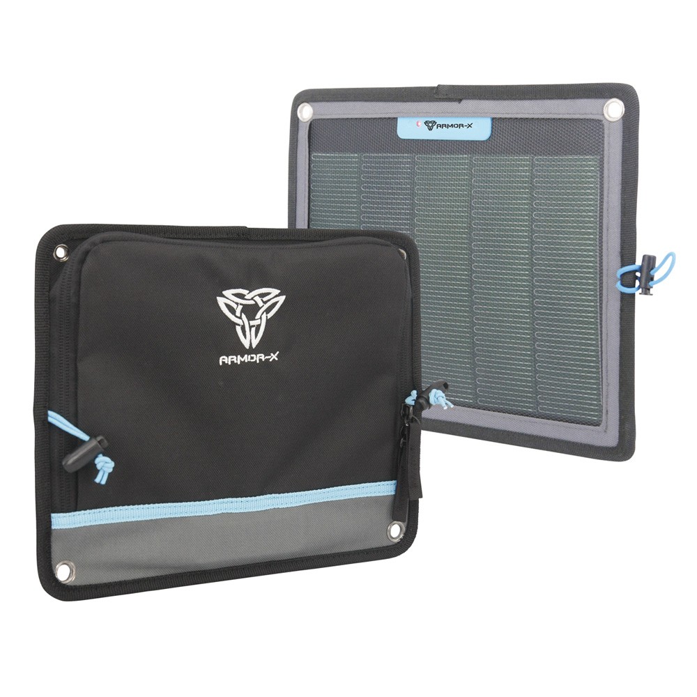 Flex 5W outdoor portable solar charger with weatherproof fabric bag, green energy to charge your powerbank, gps, smartphone & more