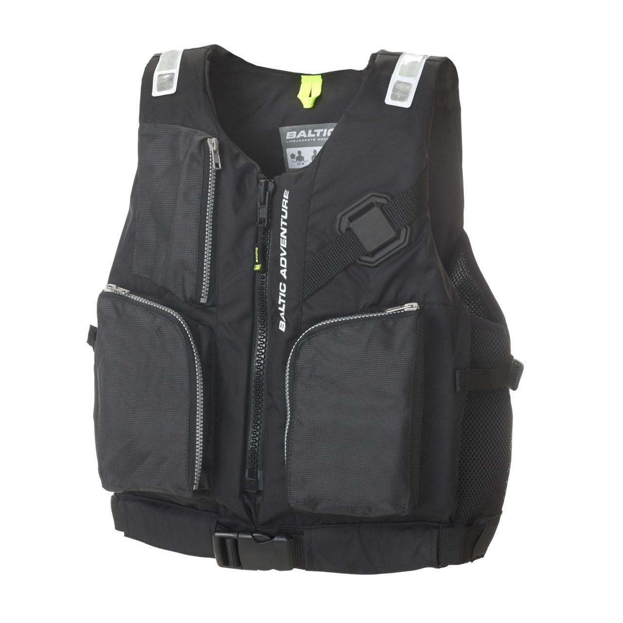 As the name suggest the Adventure is the ideal buoyancy aid for adventure on the water. If you are fishing, paddling or just looking for a vest with multiple pockets Adventure is an excellent choice. There are two front zip pockets, a large one to use for example a bait box and a smaller one for a mobile phone. The Adventure also has several attachment points, a holder for pliers or multi-tool and retro reflective patches on the shoulders. The back has also two drain mesh pockets.