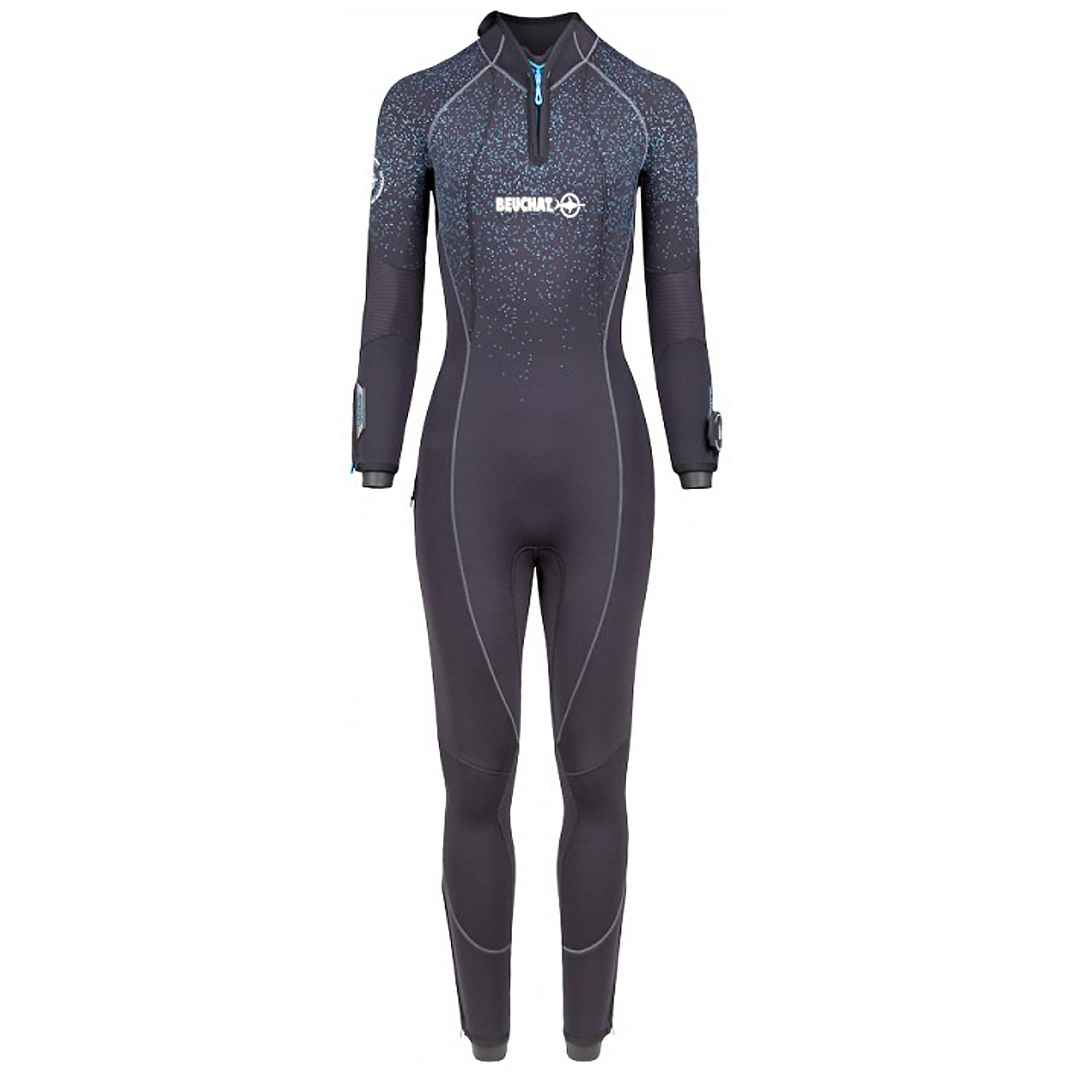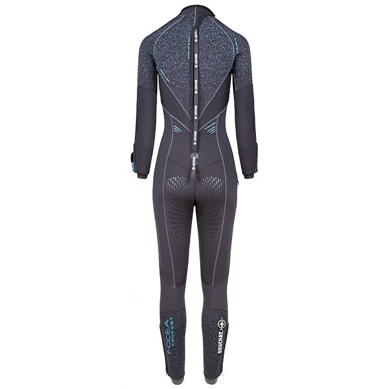 - Large G-Lock plus back zip (one-piece with collar) with metal slider and embossed Water Dam System cover for a better seal (Beuchat patent)