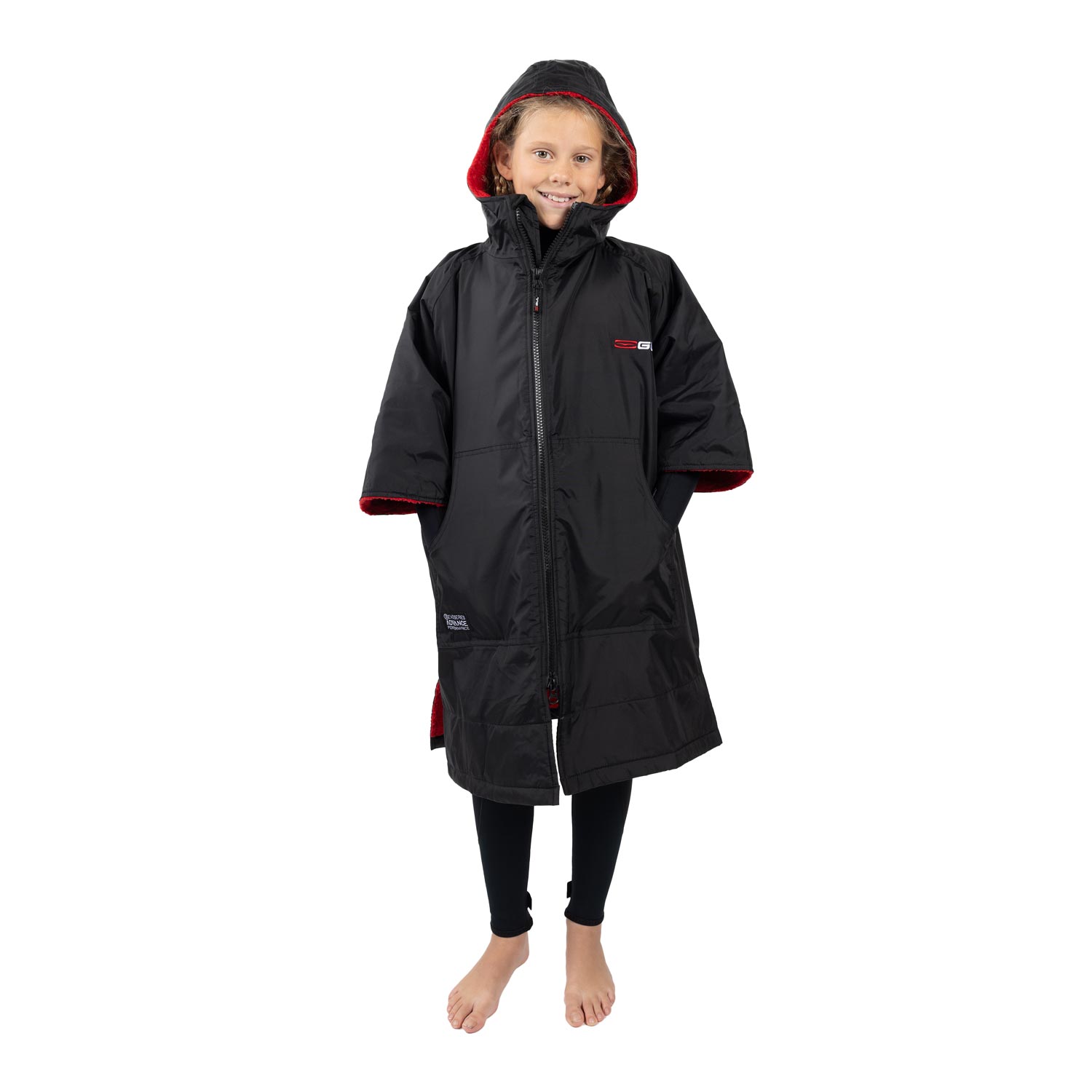 Gul Junior Evo Robe Waterproof Hooded Changing Poncho - Black/Red