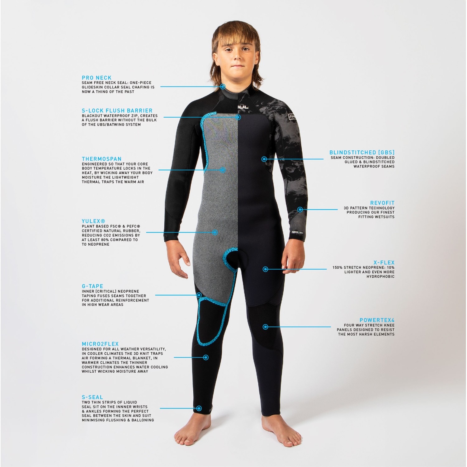 Gul Junior Flexor Yulex 5/4mm Backzip Wetsuit 2026 - Blue/Cyan FX1230£135.00£121.50