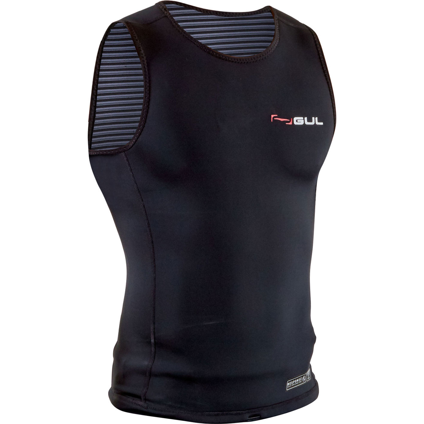 The response 1.5mm Flatlock vest uses Guls' titanium-2 lined neoprene designed to reflect the heat back in. the response vest is perfect for keeping the wind off your back. The main body uses long lasting, durable and flexible dura-flex neoprene that has been constructed with Fatlocked seams to ensure an increased lifespan. The response vest has been designed with a reversible climate control system: the black side for cold weather and the grey for hot weather. The response range meets all the requirements for the all-round watersports enthusiast.