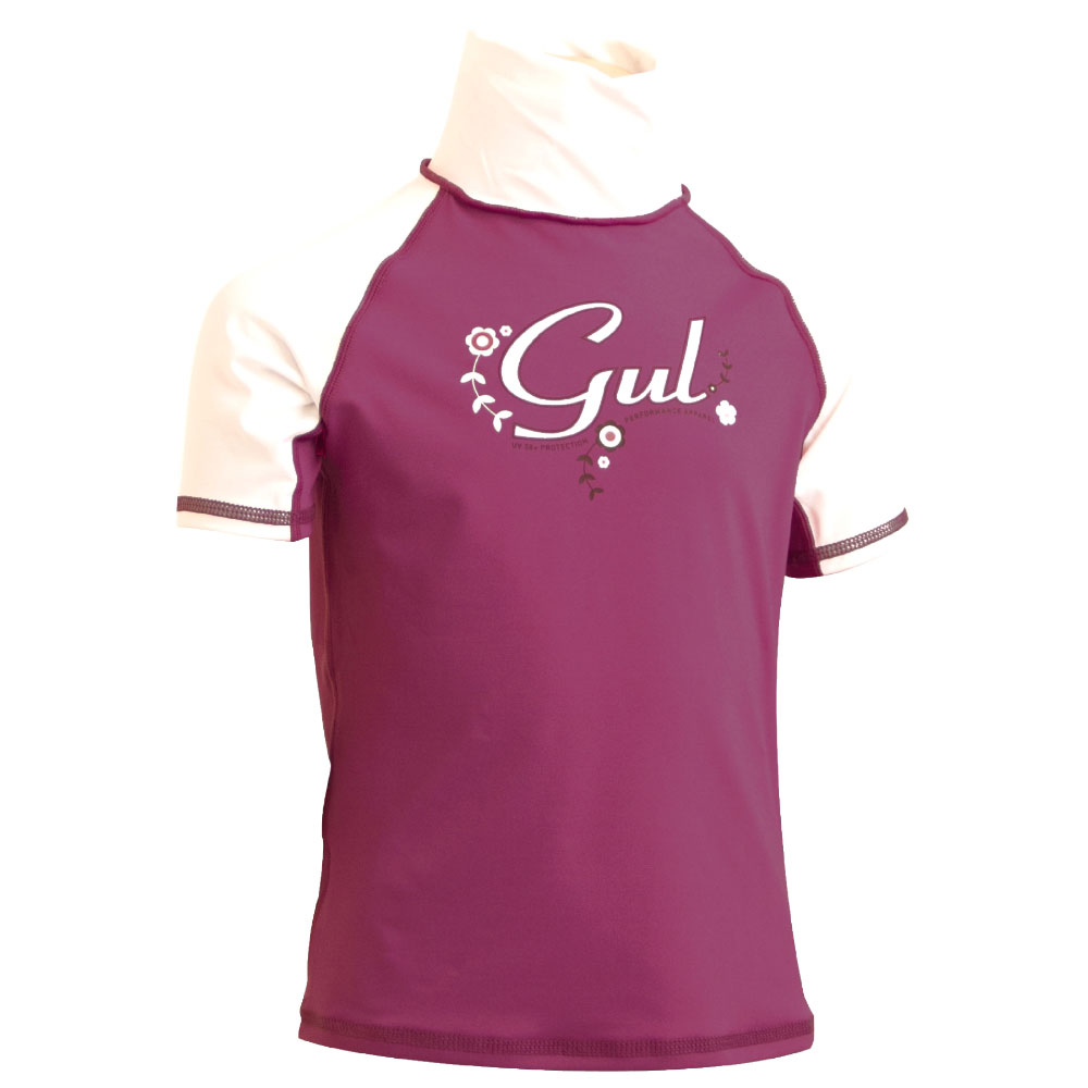 Gul Short Sleeve Junior Girls Rash Vest / Guard - Cloudberry/White