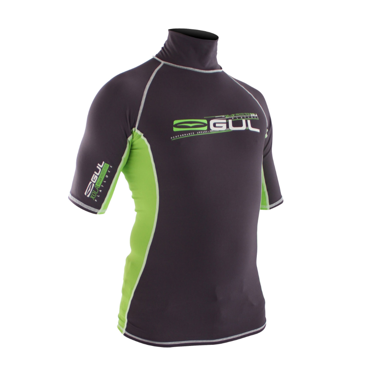 Gul XOLA Short Sleeve Mens Rash Vest / Guard - Deep Grey/F.Lime
