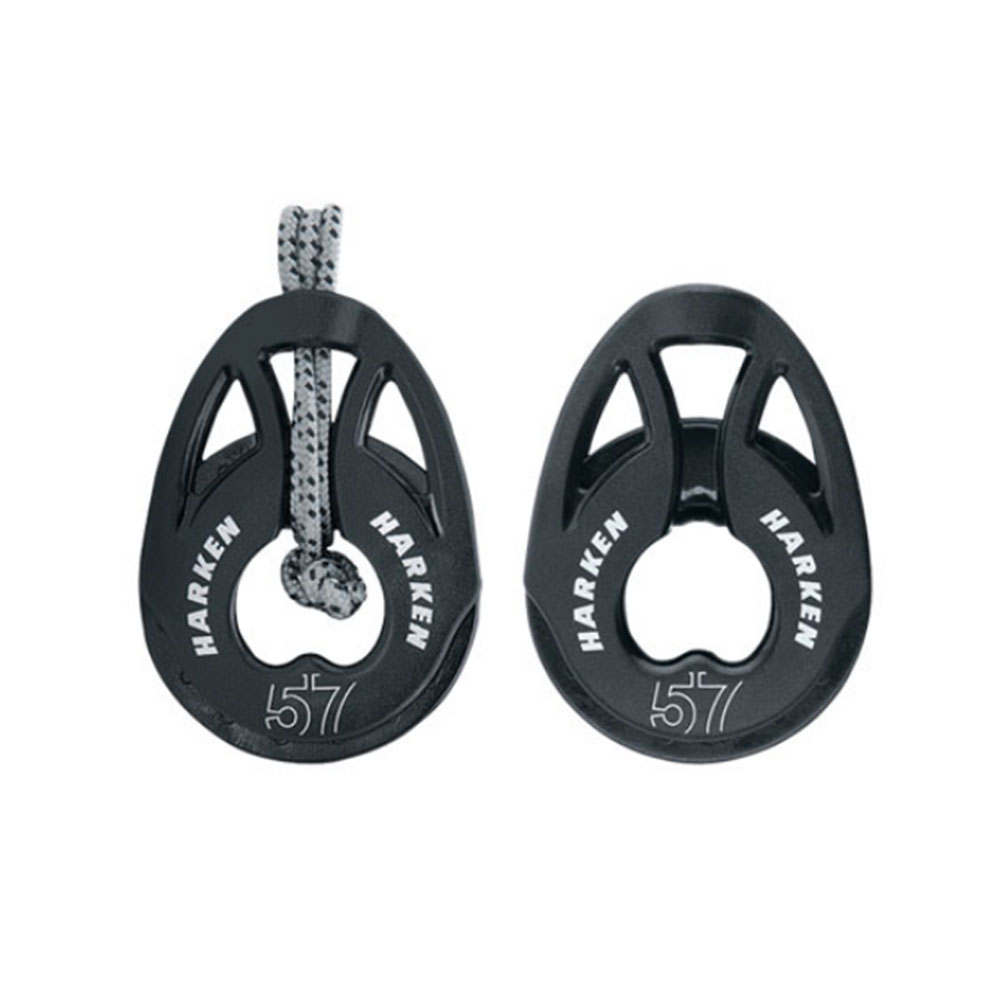 The high-strength composite T2 is the first block with no metal shackles or rivets. It is used for traveler controls, mainsheets and vangs, cascades, bridles, and other systems where small, lightweight blocks are called for. The T2 can be tied, spliced, or lashed to almost anything. A length of Spectra line is included.