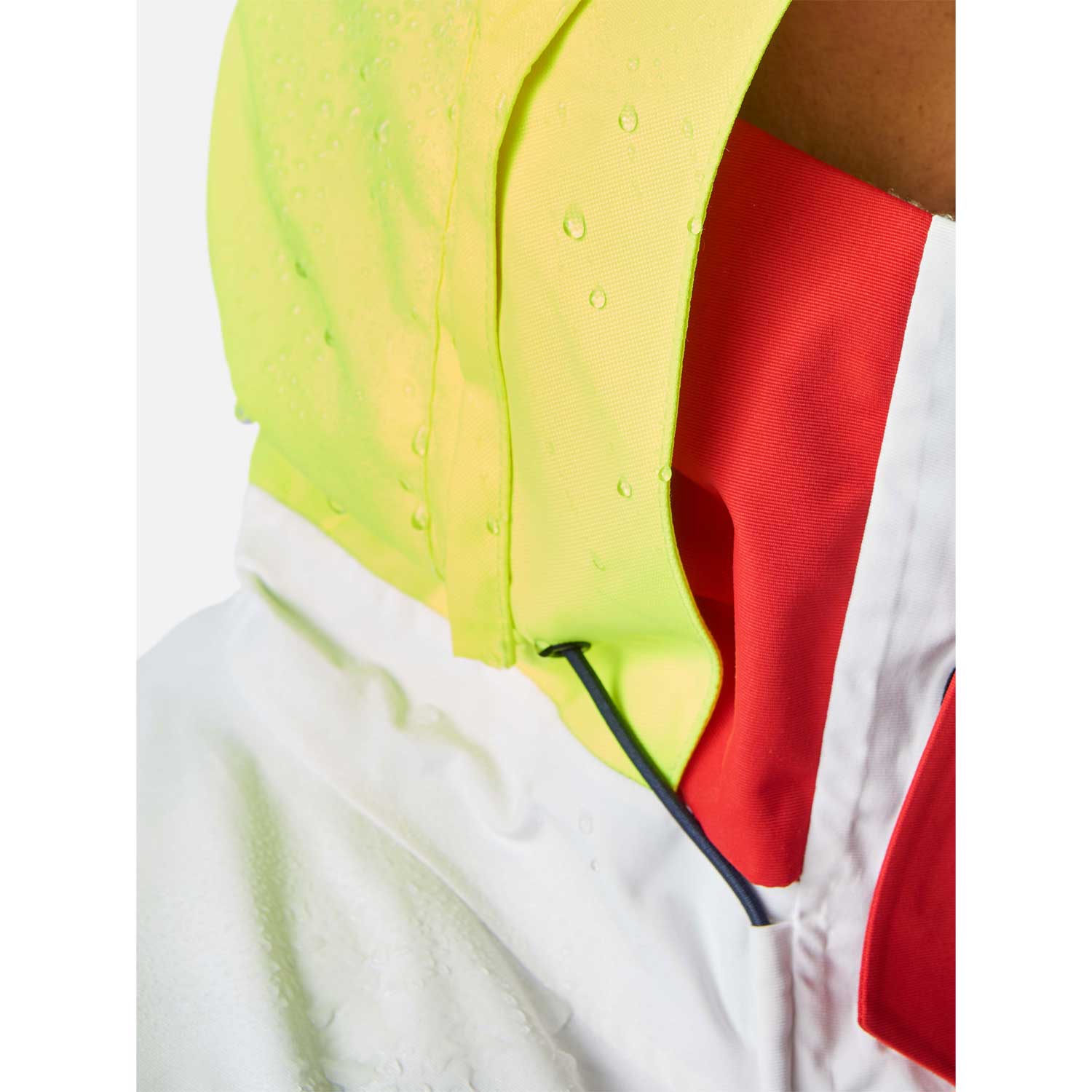 - The easy to store, adjustable, hi visibility hood includes a drainage system to take running water away from the peak.