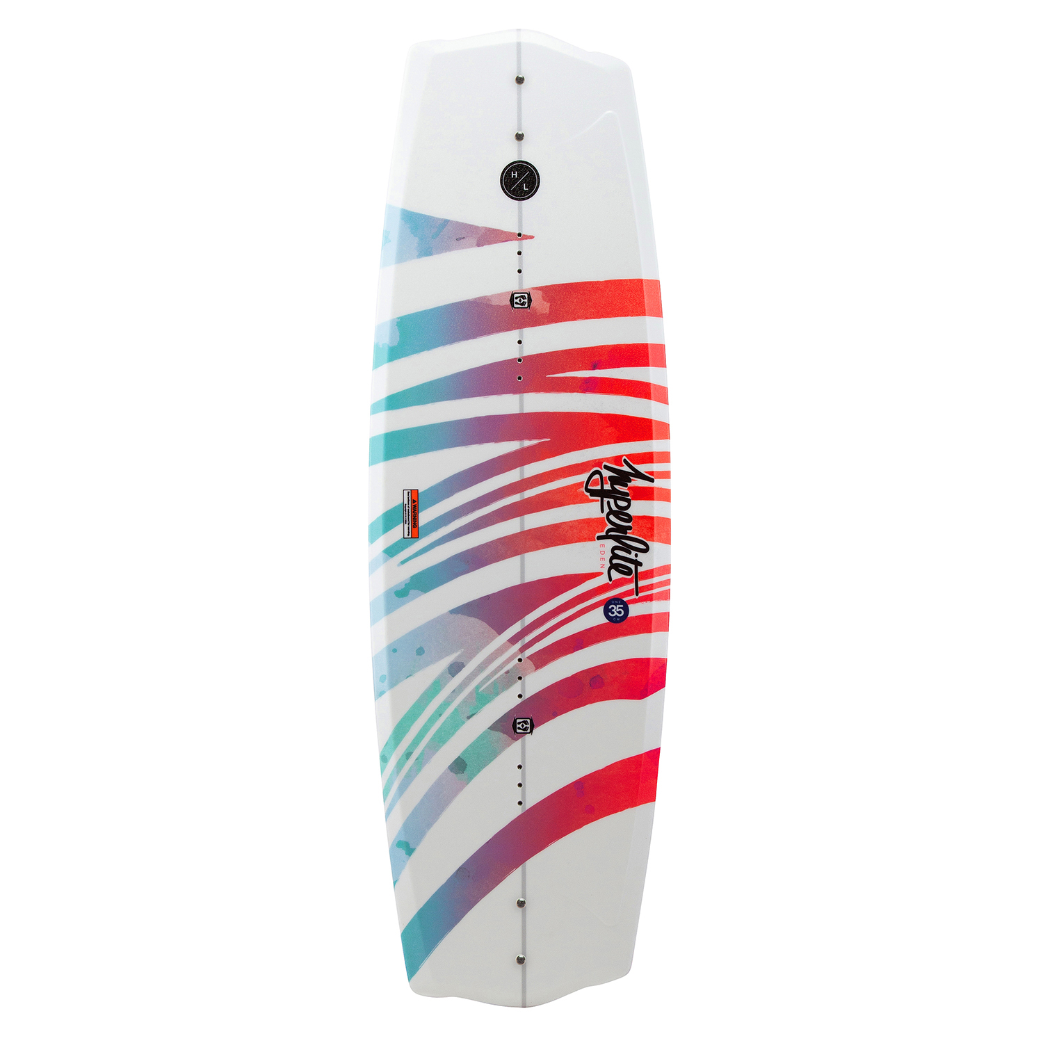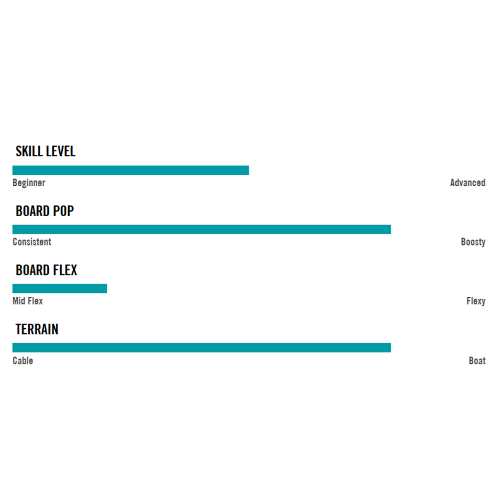 The asymmetrical design and women's specific flex make it the perfect choice to advance your skills. Creating a women's shape to take their skills to the next level was the goal behind the new Eden 2.0. Learning from other asymmetrical designs, we found that creating a shorter but more effective edge on a rider's toe-side made hard to learn wake jumps that much easier. This is because there is less rail to initiate when applying toe-side pressure. Once set, the smoother toe-side transition is then held by the Eden 2.0's thinner profile molded-in fin, creating less drag and a better release off the top of the wake. Subtle Toe-Side Footbed Risers were also added to help a rider create more leverage when pressure is applied. The longer, more traditional heel-side edge compliments this asymmetrical design by allowing the natural body position of a rider to generate stability and speed into the wake without a loss of pop due to reduced surface area. The Eden 2.0 has been tested and proven to be the best choice for a rider looking to master the foundations of wakeboarding.