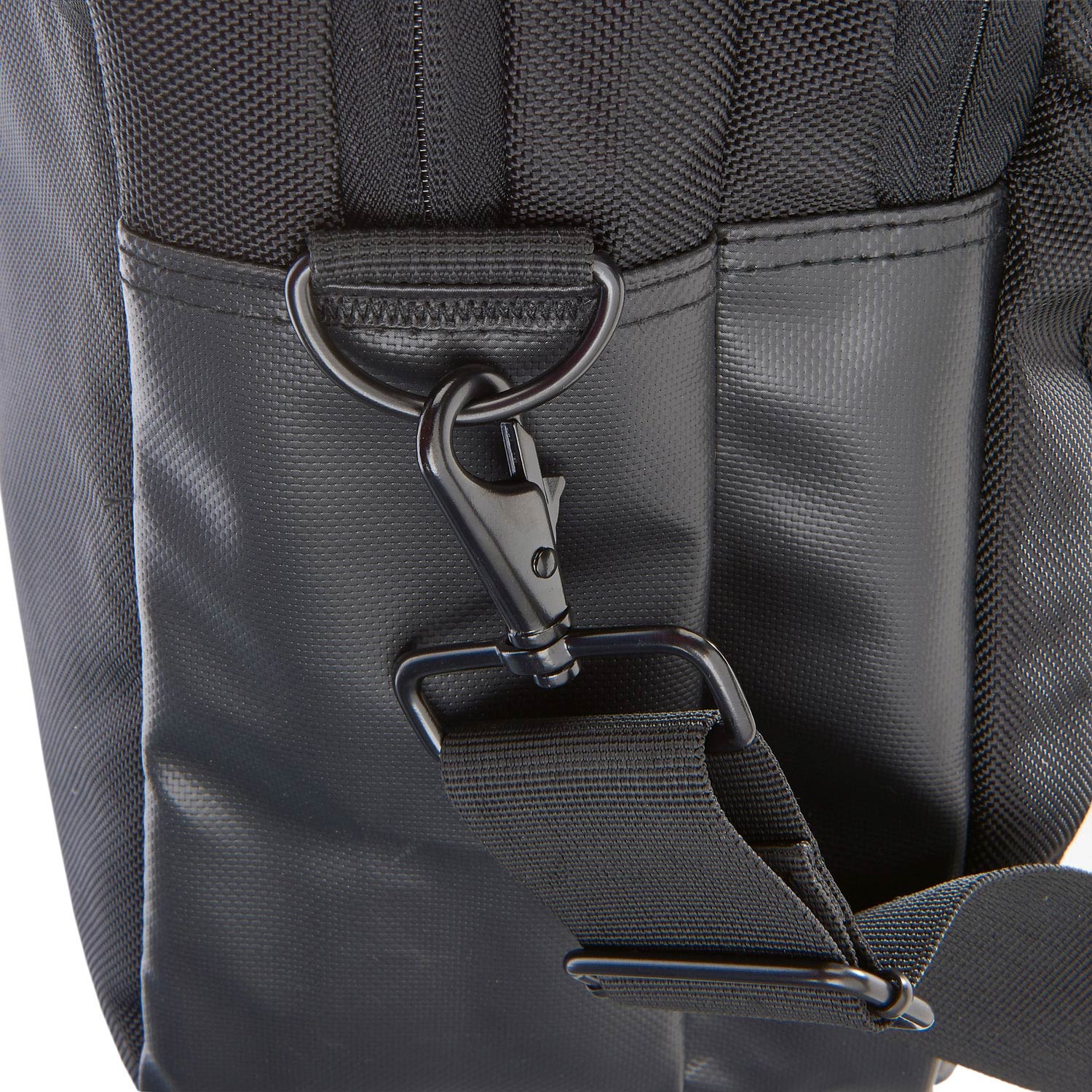 - Coated nylon base for water resistance when bag is placed on damp surfaces