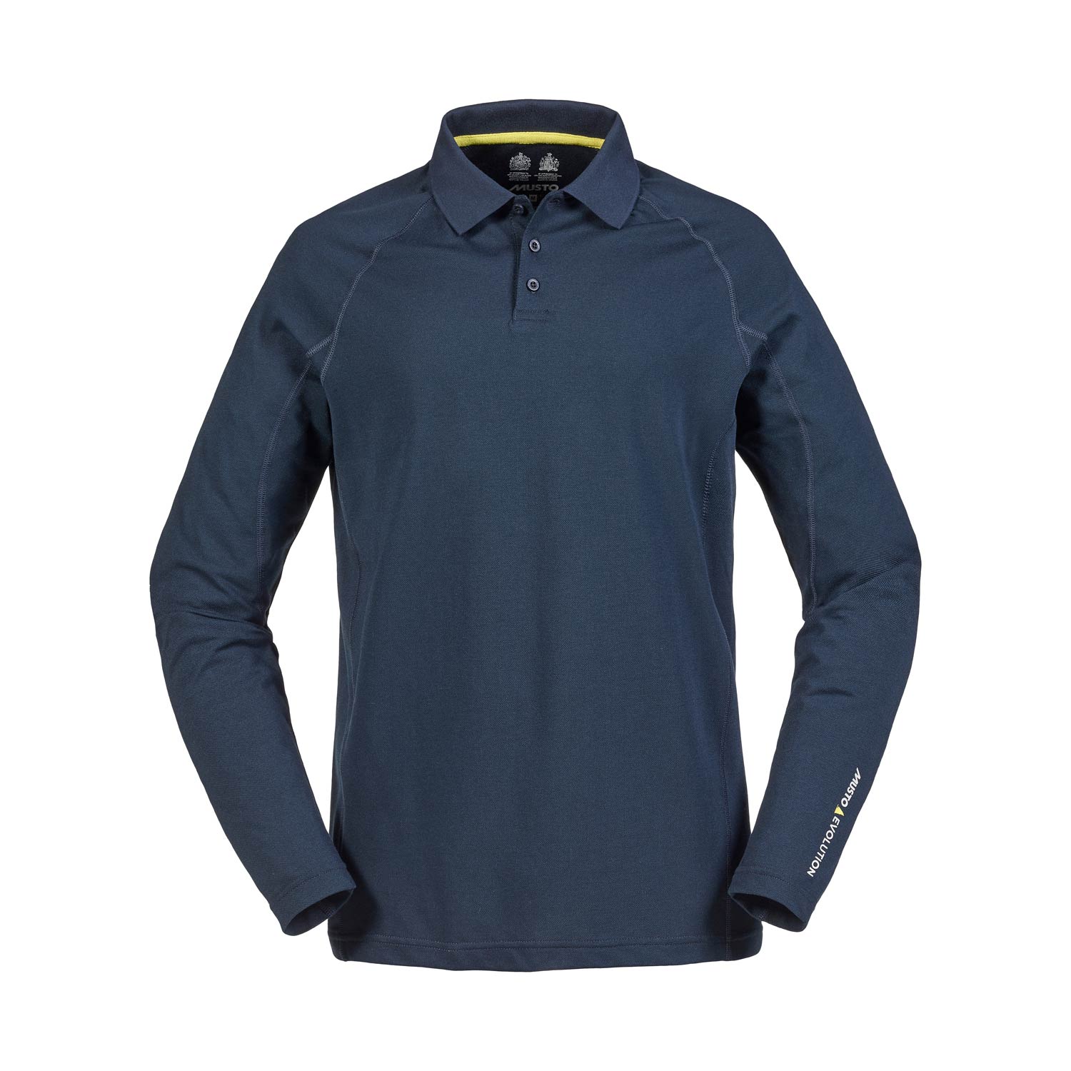 - MUSTO Evolution branding on the front shoulder seam