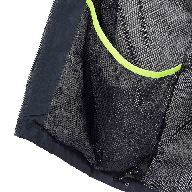 - Fluorescent GORE-TEX® hood with peak is fully waterproof, breathable and adjustable and rolls into the collar