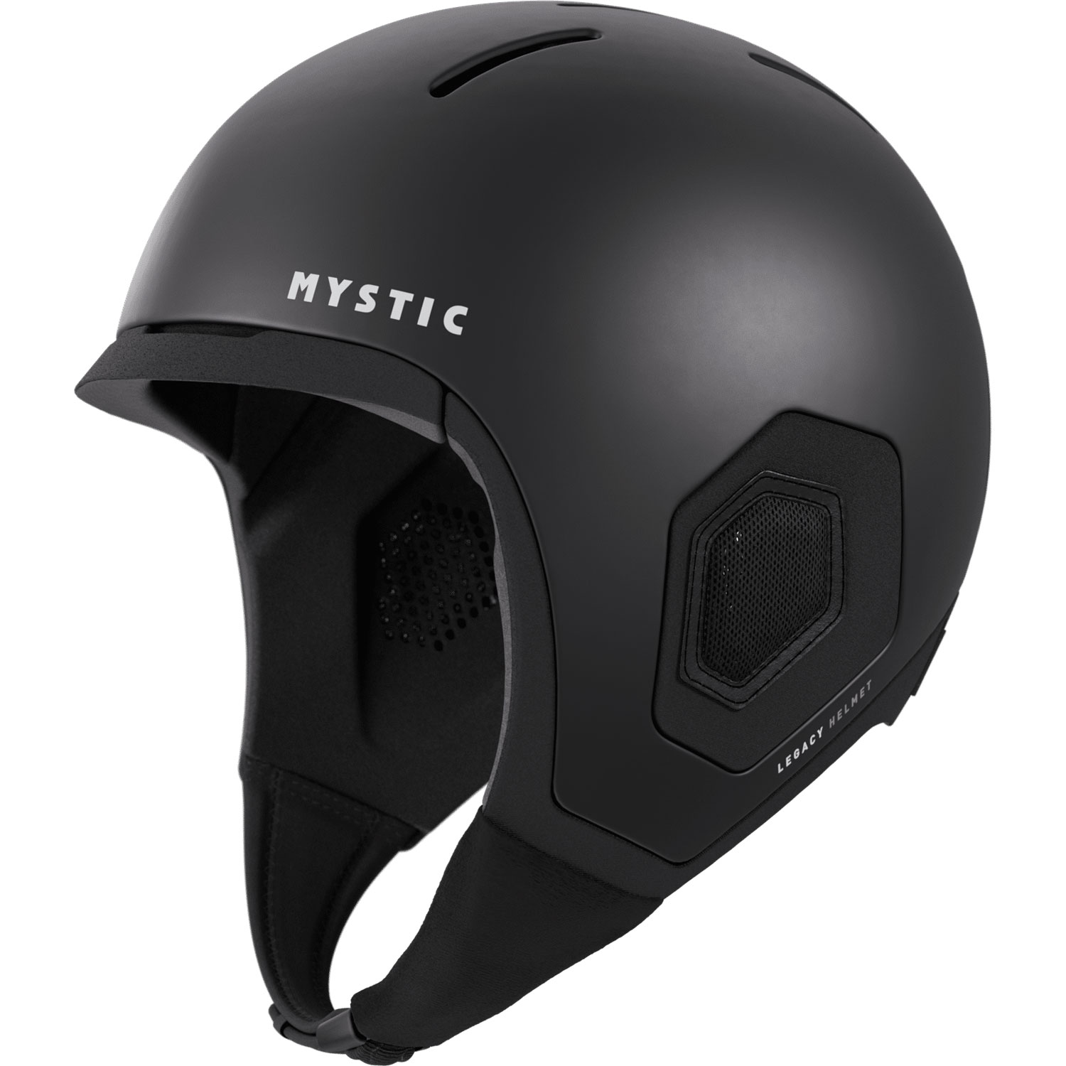 Fits like a neoprene hood, protects like a helmet. The Legacy Helmet delivers lightweight, slim-fit protection with a high-impact ABS outer shell that absorbs heavy hits without extra weight. Extended temple and jaw coverage help guard against direct impact. A unique Velcro fitting system and three available sizes ensure the closest fit possible, so whether you're duck diving or taking a hit, you’ll barely notice it’s there. Strategically placed airflow channels keep your head cool in warmer waters, while flush channels drain water below the eyes. Sound-optimizing ear pads shield against cold and wind chill while still letting sound pass through. All in all, a helmet that lives up to its name.