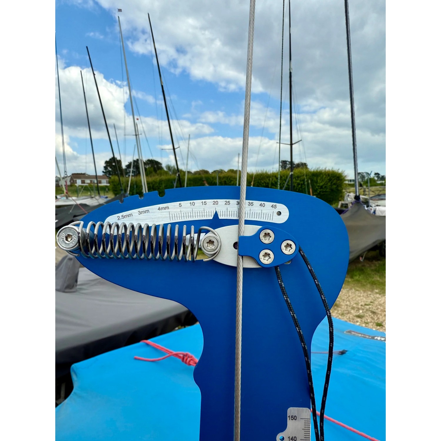 A built-in 150mm ruler lets you measure mast deflection and other rig settings without reaching for a tape measure.