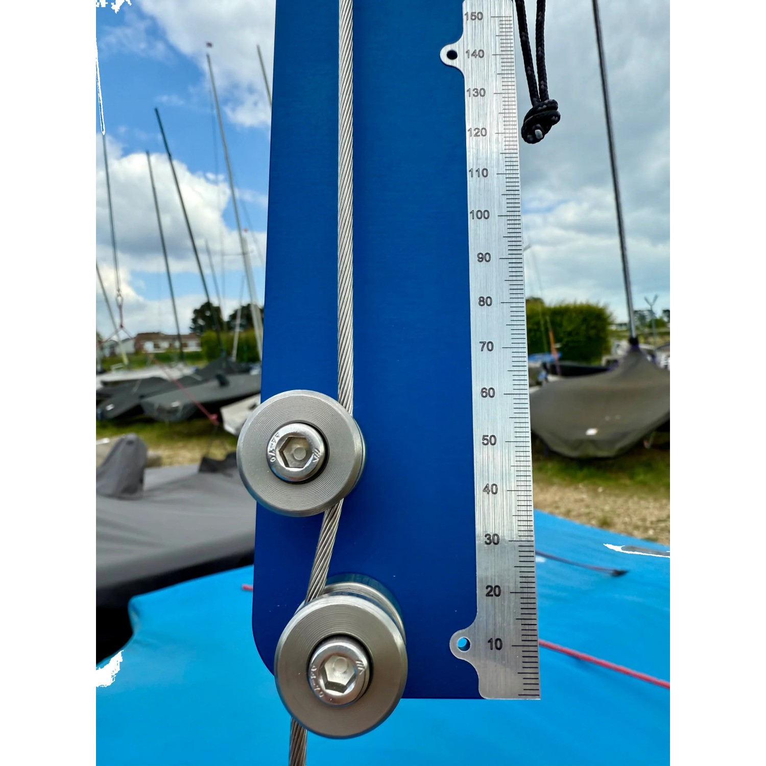 - Integrated 150mm ruler for mast deflection checks
